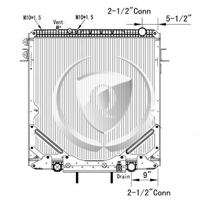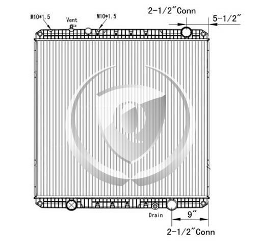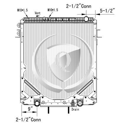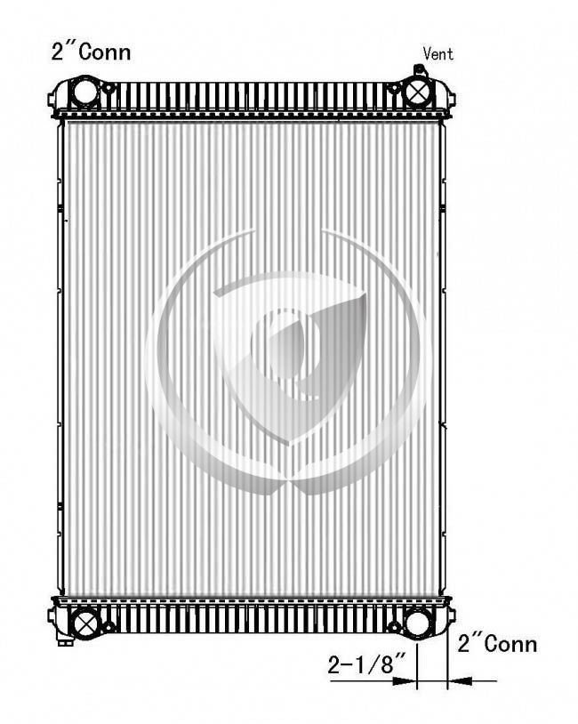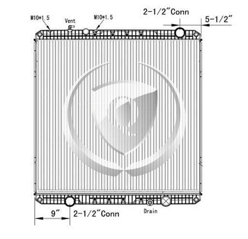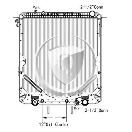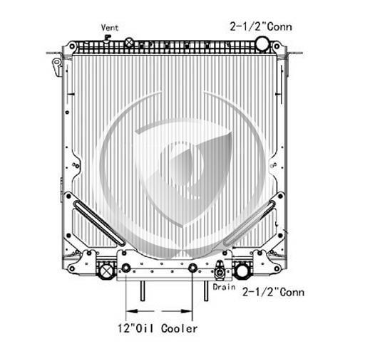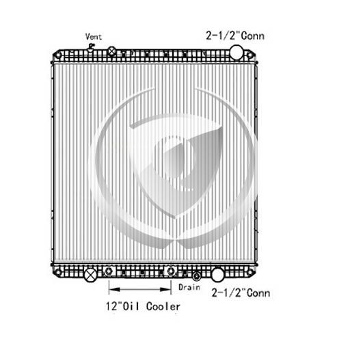 Height: 40.12"Width: 41.62"Depth: 2.25"Inlet: 2.5"Outlet: 2.5"Notes: 2012-2013 Freightliner Coronado CC, Coronado CD Plastic Aluminum Radiator W/Frame. 12" 5-Plate Transmission Oil Cooler. ** Same as FLA002281 without frame ** -
