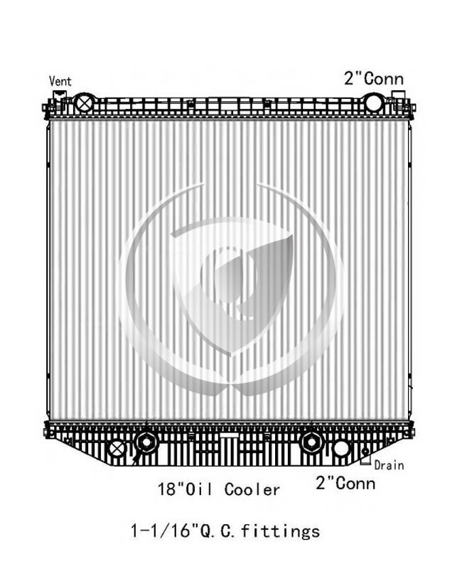 Height: 33.31"Width: 38.87"Depth: 2"Inlet: 2.5"Outlet: 2.5"Notes: 2012-2014 Freightliner 114SD Plastic Aluminum Radiator. 18" TOC 7-Plate with Quick Connection Fittings. ( confirm thickness with FLA002202 before ordering )