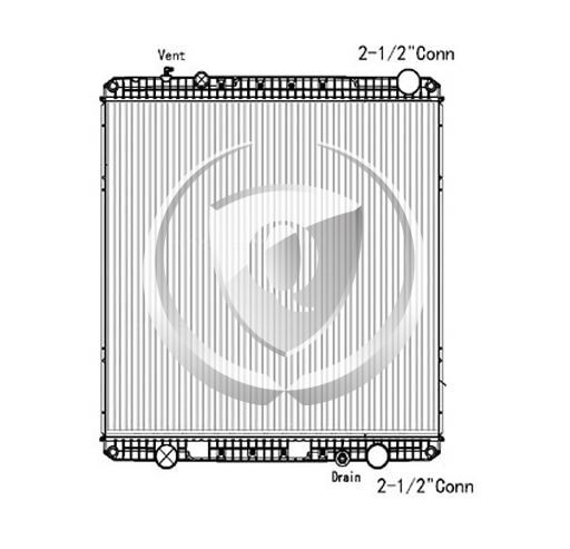 Height: 40.125"Width: 41.50"Depth: 2.25"Inlet: 2.5"Outlet: 2.5"Notes: Freightliner/Sterling Plastic Aluminium Radiator With Frame (Without Frame FLA002283) NO TOC/EOC -