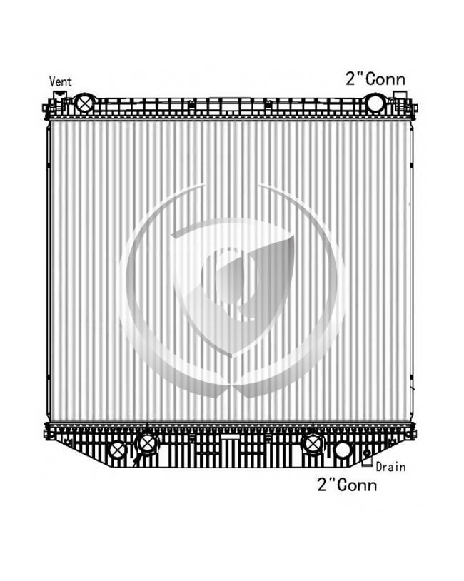 Height: 33.31"Width: 38.87"Depth: 2"Inlet: 2.5"Outlet: 2.5"Notes: 2012-2014 Freightliner 114SD With Cummins ISL 9L Engine Plastic Aluminum Radiator. No TOC/EOC ( confirm thickness with FLA002201 before ordering ) -