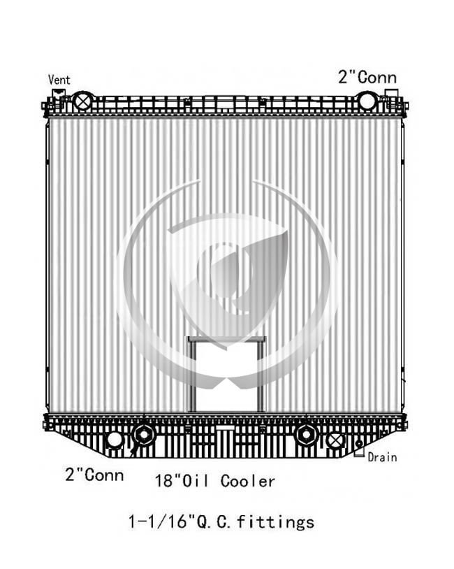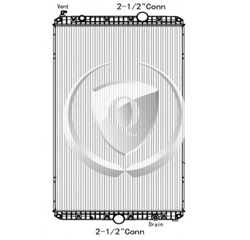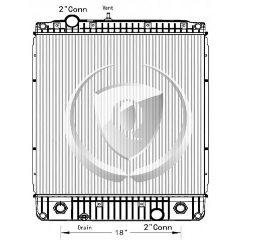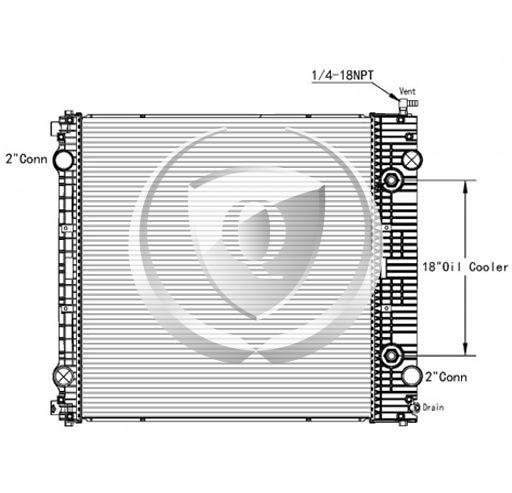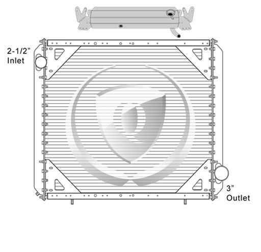 Height: 27.42"Width: 25.06"Depth: 2.18"Inlet: 2.5"Outlet: 2.5"Notes: 2010+ Freightliner Chassis Motorhome/Parcel Delivery Truck Plastic Aluminum Radiator. 18" 7-Plate Tranmission Oil Cooler. Vent pipe on Top Tank. -