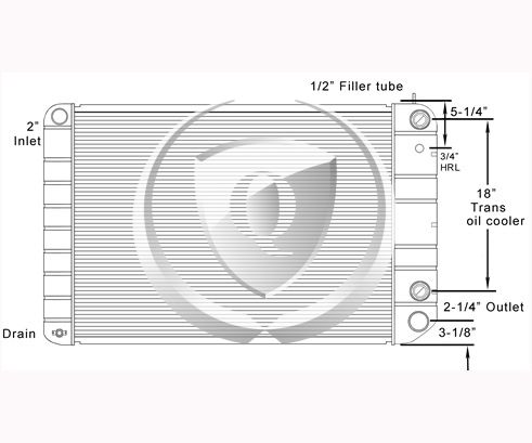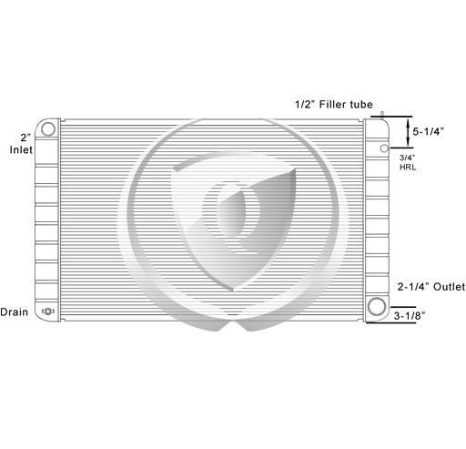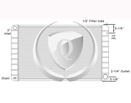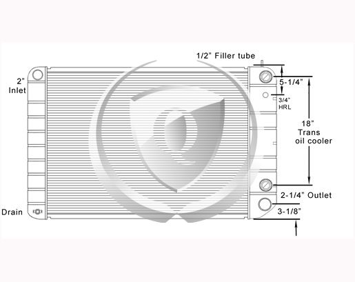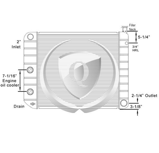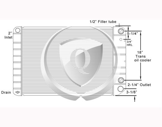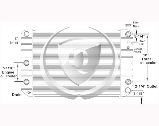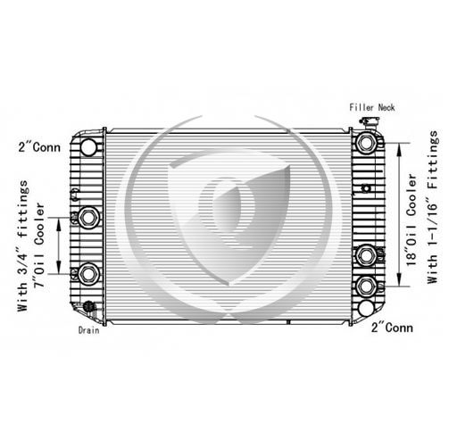 Height: 35.25"Width: 25.50"Depth: 1.43"Inlet: 2"Outlet: 2.25"Notes: 1 Row TOC 18" 6 Plate 3/4" NPT Fittings,GMC Radiator Topkick/Kodiak 18.00 " c.l. - 6 plate oil cooler in right tank crossflow radiator -