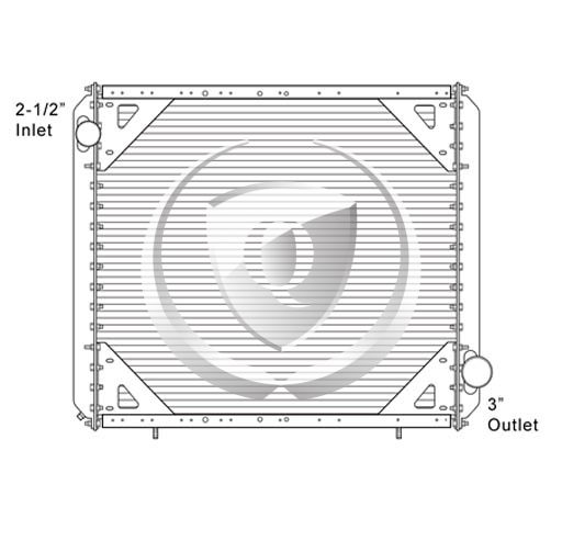 Inlet: 2.50″ Upper Left Outlet: 3.00″ Lower Right 14 Fins Per Inch *4 Row CT Core LH 1/2″ Tube on 3/8″ Centers, 3 row core