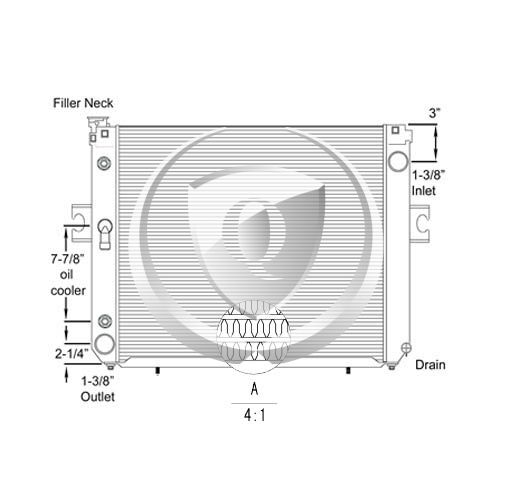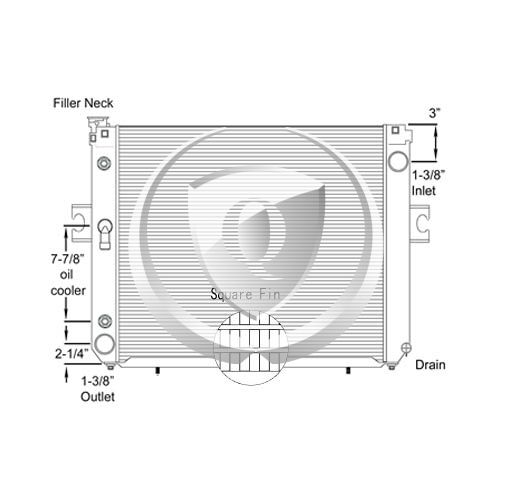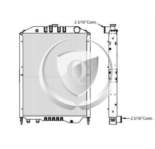 Height: 23.56"Width: 24.75"Depth: 1.56"Inlet: 2.1875"Outlet: 2.1875"Notes: 2005-2007 Hino 145, 165, 185 Plastic Aluminum Radiator. No TOC/EOC. ** Same as FLA000970 with Oil Cooler **