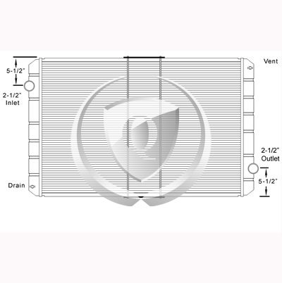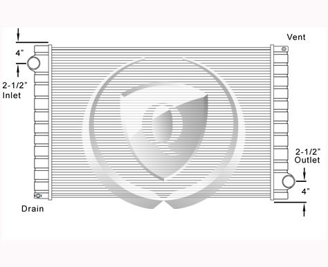 Inlet: 2.50″ Upper Left Outlet 2.50″ Lower Right, LH 1/2″ tube on 3/8″ centers, 3 row core