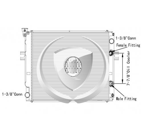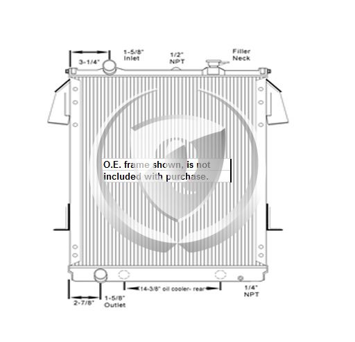 Height: 29.75"Width: 26"Depth: 2.25"Inlet: 1.25"Outlet: 1.25"Notes: International 4 Row Radiator. 18" Oil Cooler in Bottom Tank. Curved bottom castings. If Crank Box needed please use FLX000741 -