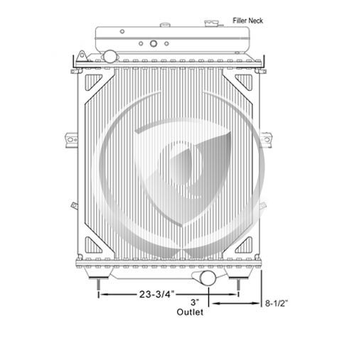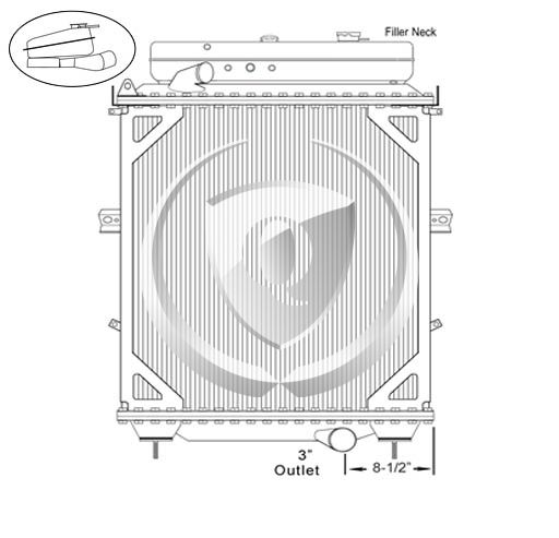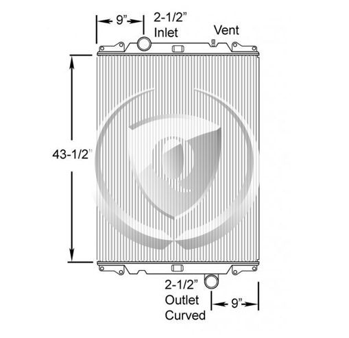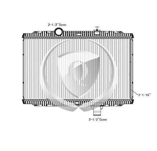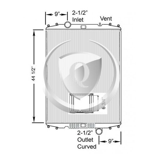 Height: 40.5"Width: 30.62"Depth: 2"Inlet: 2.5"Outlet: 2.5"Notes: Peterbilt/Kenworth radiator fits 2008-2013 T660/Pete 320 Curbtender. No EOC/TOC. PTO/Crankbox Measurements: 12.086" from either side of radiator. 5.944" from bottom of radiator to bottom of PTO. PTO/Crankbox measures 6.77" X 7.24" -