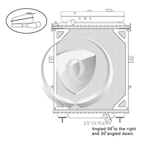 Inlet: 2.50″ Top Left Outlet: 2.50″ Bottom Right 3 Row Core, UP 1/2 tube on 7/16″ centers, 3 row core