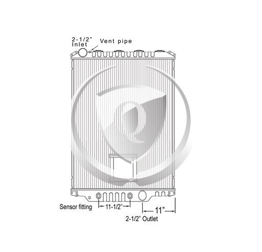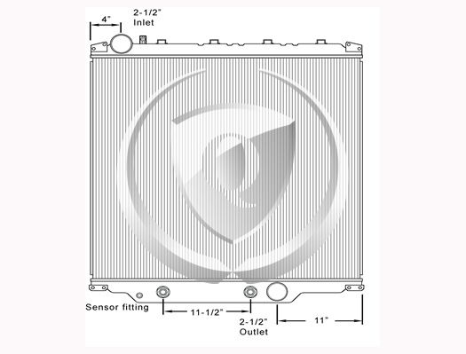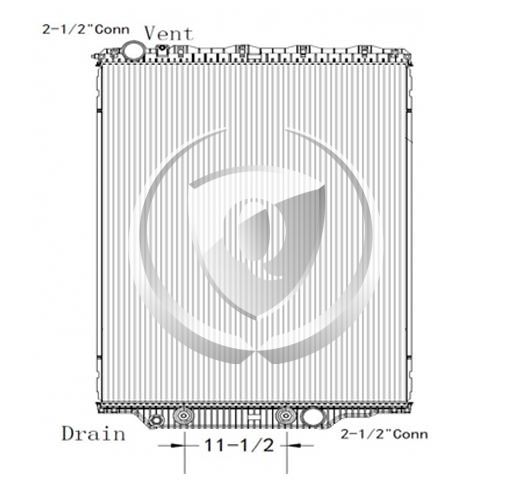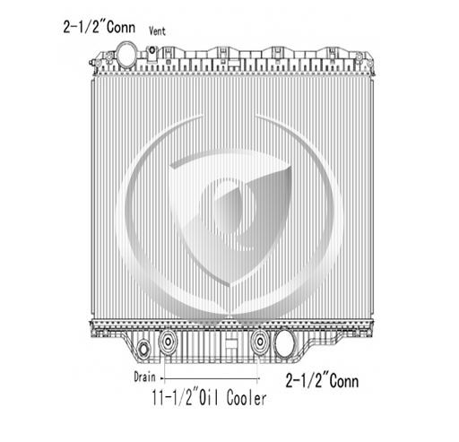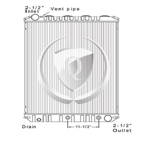 Height: 26.37"Width: 24.12"Depth: 2"Inlet: 2.5"Outlet: 2.5"Notes: 2008-2010 Mack/Volvo GU/Granite and Volvo VHD Plastic Aluminum Radiator. 11.50" 8-Plate transmission oil Cooler. Compare with FLA000626 Bottom tank mounts. -