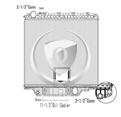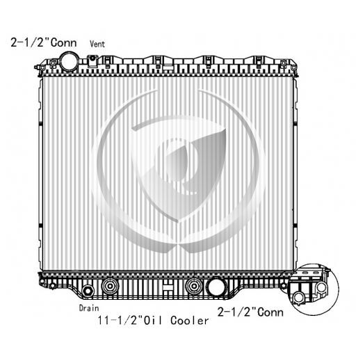 Inlet: 2.50″ Top LeftOutlet: 2.50″ Bottom Right, PTO box 1/2″ tube on 3/8″ centers, 2 row core