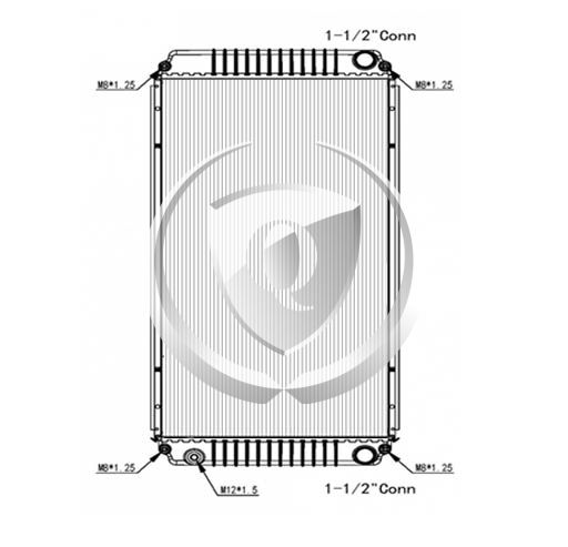 Height: 39.37Width: 34.12"Depth: 2."Inlet: 2.5"Outlet: 2.5"Notes: 2008-2010 Mack/Volvo CHN, CHU, GU, Granite, VHD, VXL Plastic Aluminum Radiator with Crankbox. 11.50" 8-Plate Transmission Oil Cooler With Quick Connect Fittings. Compare With FLA000625 Mounting Holes/TOC Quick Connect Fittings. -
