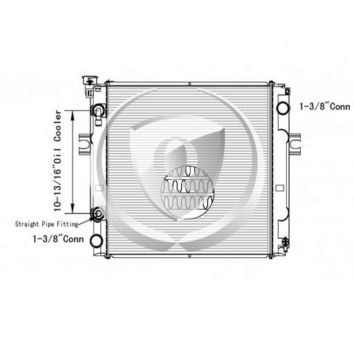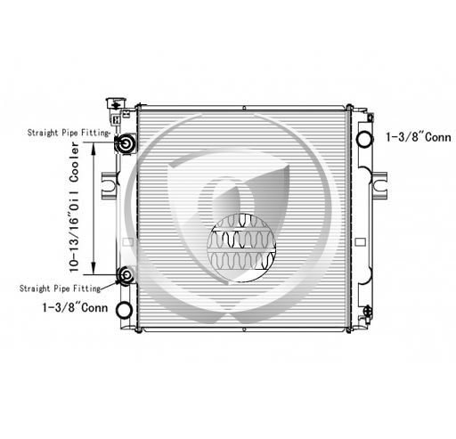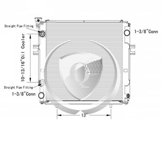 Height: 15.75"Width: 17.625"Depth: 1.875"Inlet: YesOutlet: YesNotes: Mitsubishi/Caterpillar Lift Truck Plastic Aluminum Radiator. 11" 3-Plate Oil Cooler With Straight Pipe Fitting Left Tank -
