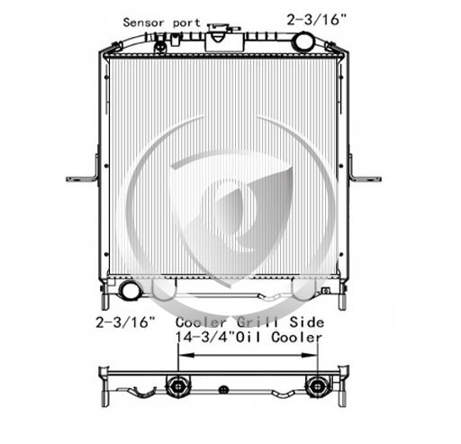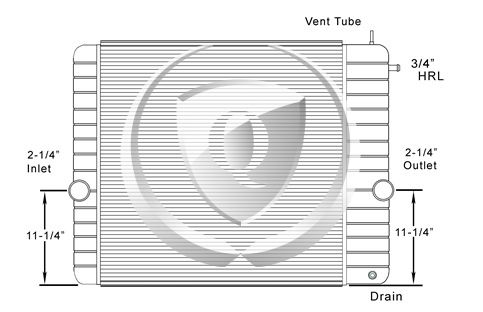 Inlet: 2.25″ Lower Left Outlet: 2.25″ Lower Right, LH 1/2″ tube on 3/8″ centers, 2 row core