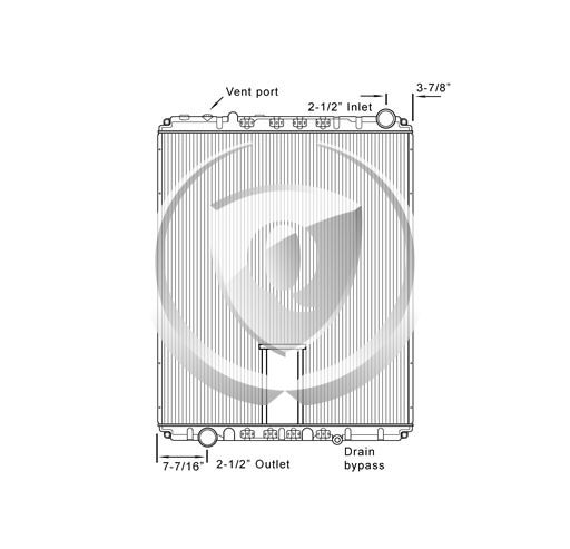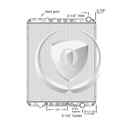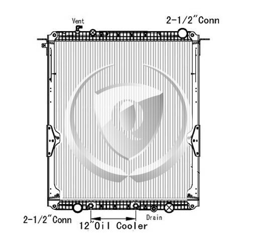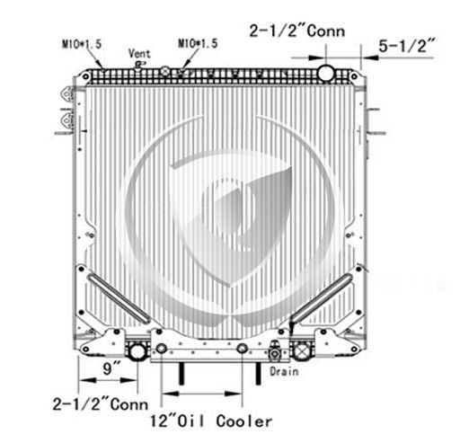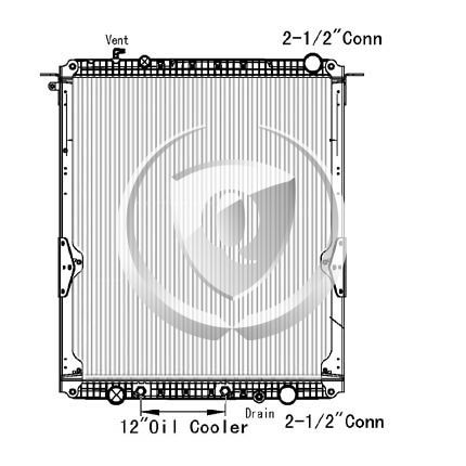 Height: 38.87"Width: 38"Depth: 2.12"Inlet: 2.5"Outlet: 2.5"Notes: Freightliner Radiator Fits 2008 - 2011 Casdia/Classic/Sterling Model A9513/AT9500 with MBE 4000 Engine 12.00 " Oil Cooler Plastic Aluminum Structure -