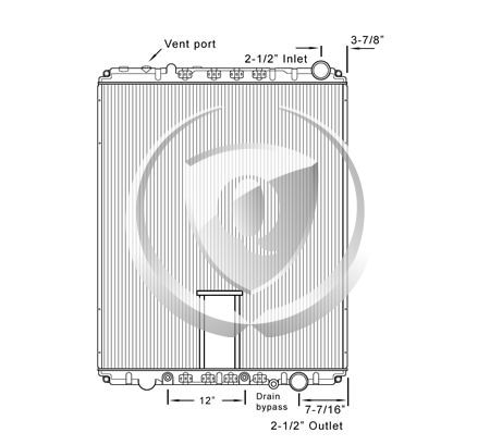 Inlet: 2.50″ Top RightOutlet: 2.50″ Bottom Right, LH 1/2″ tube on 3/8 centers, 2 row core
