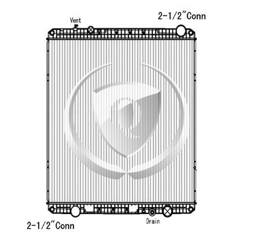 Height: 41.125"Width: 41.50"Depth: 2.25"Inlet: 2.5"Outlet: 2.5"Notes: Freightliner/Sterling Plastic Aluminum Radiator. 12" 5-Plate Transmission Oil Cooler in outlet tank. -
