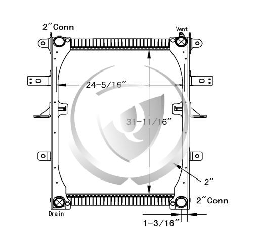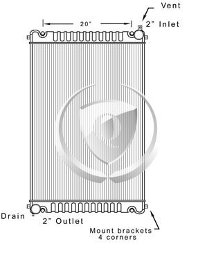 Inlet: 2.00″ Top Right Outlet: 2.00″ Bottom Left, LH 1/2″ tube on 3/8″ centers, 2 row core