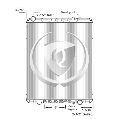 Height: 36"Width: 31.75"Depth: 2"Inlet: 2.5"Outlet: 2.5"Notes: Freightliner Radiator 1998 - 2002 Century/Columbia Series VENT TUBE ON THE TOP LEFT DRIVER SIDE / DRAIN BOTTOM RIGHT PASSENGER SIDE. If needing thre vent tube on the passenger side, use FLA000211, Plastic Aluminum Structure