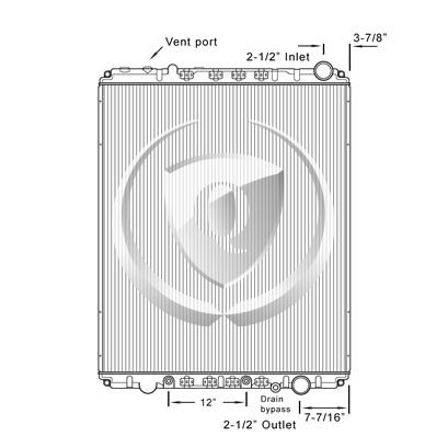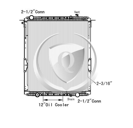 Height: 41.62"Width: 38"Depth: 2"Inlet: 2.5"Outlet: 2.5"Notes: Freightliner/Sterling Radiator Fits 2007 - 2011 Columbia, Cascadia with Mercedes Engine 12.00 " Oil Cooler *Customer must match picture and verify oil cooler*, Plastic Aluminum Structure -
