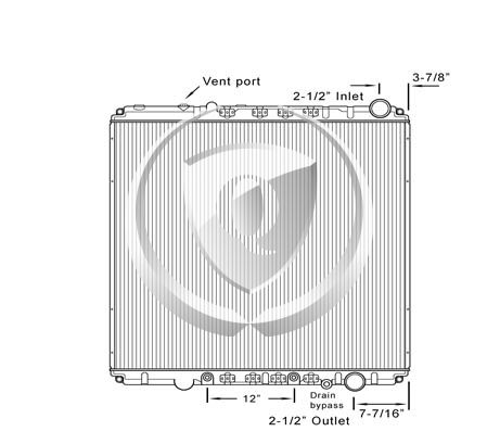 Height: 33.25"Width: 39.50"Depth: 2"Inlet: 2"Outlet: 2"Notes: reightliner Radiator Fits 2008 - 2010 Freightliner/Sterling L/LT 7500 - 8500 Models 18.00 " Oil Cooler 7.00 " x 7.00 " PTO(Crank Box) centered on bottom header -