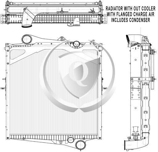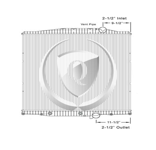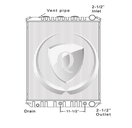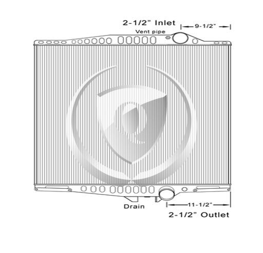Height: 26.37"Width: 24.12"Depth: 2"Inlet: 2.5"Outlet: 2.5"Notes: 2008-2010 Mack/Volvo GU/Granite and Volvo VHD Plastic Aluminum Radiator. 11.50" 8-Plate transmission oil Cooler. Compare with FLA000626 Bottom tank mounts. -