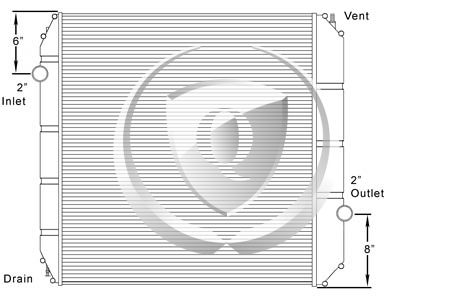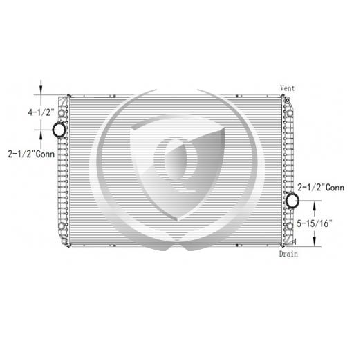 Height: 40.25"Width: 24.75"Depth: 2.18"Inlet: 2.5"Outlet: 2.5"Notes: International Plastic Aluminum Radiator. 4 Pin Mount. No TOC/EOC. *** Fits F750 W/ CAT 7 engine ***